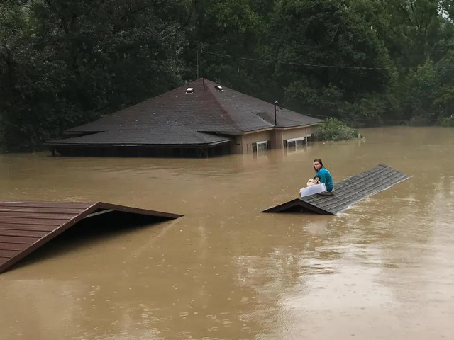 Le couple a attendu sur le toit pendant plusieurs heures, espérant que quelqu’un viendrait à leur secours. Adams était assis sur les bardeaux du toit tandis que Sandy attendait patiemment dans son sac. Adams a même pris une vidéo au milieu du chaos pour capturer la précarité de leur situation.