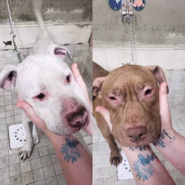 Elle a rapporté à The Trib que Sadie avait deux otites, toutes deux infestées de puces et toutes deux pesant environ 20 livres. Le groupe a collecté des fonds sur Facebook pour fournir les soins médicaux nécessaires pour que Sadie et Rocky soient en pleine forme pour la famille chanceuse qui les ramène à la maison. Le groupe adopte la paire ensemble, car ils sont si étroitement liés.